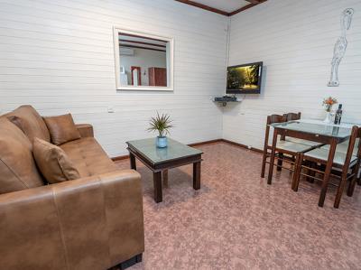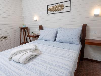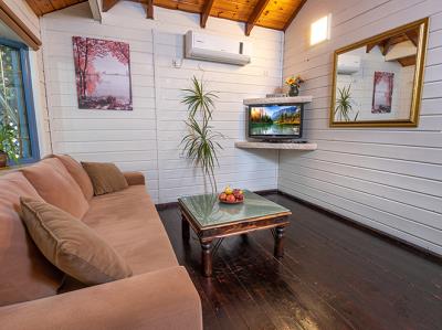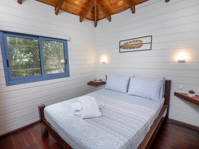 בכל בקתה חדר שינה נפרד לזוג, וסלון מרווח המיועד ללינה של עד 3 ילדים.