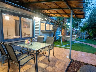 בכל בקתת צימר מרפסת מקורה עם עמדת ברביקיו ופינת ישיבה נעימה ונוחה.