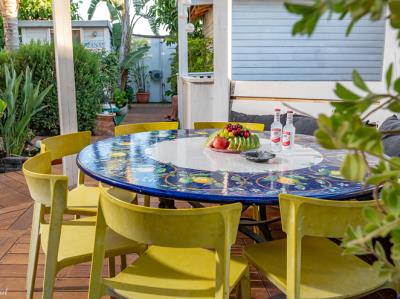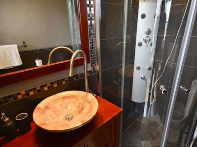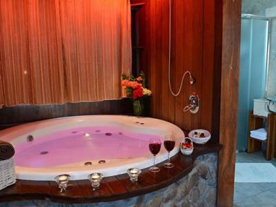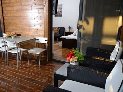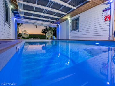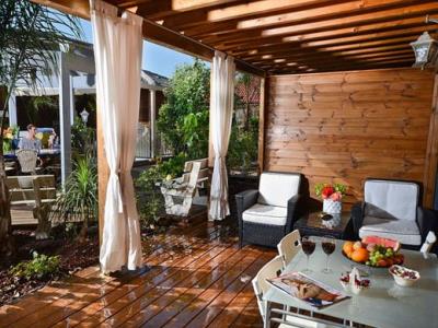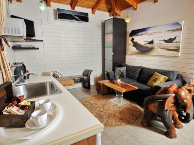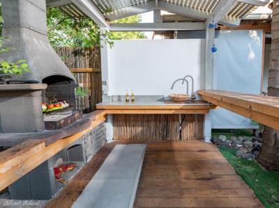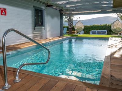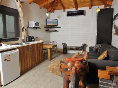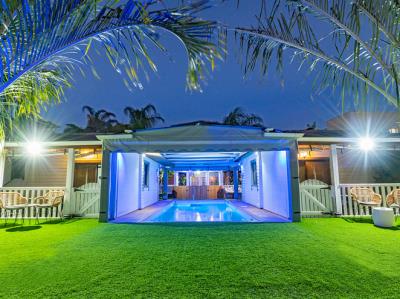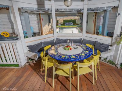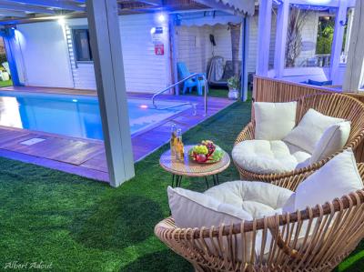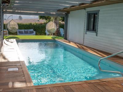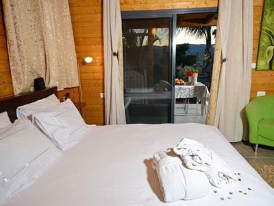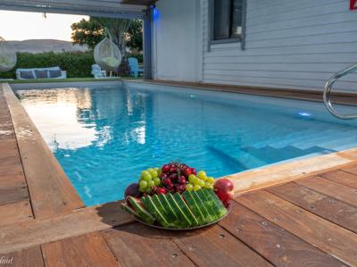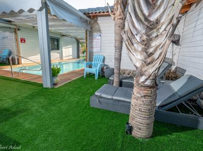 התארחנו 4 משפחות במקום, ולמעשה אכלסנו את כל הבקתות. שבמקום. המתחם שחיכה לנו היה נקי ומצוחצח, הבקתות נקיות (חדר השינה, המקלחת והג'קוזי), וכך גם המטבחון המשותף שמציע מקרר גדול+מקפיא ענק, אשר בנוסף למקרר המיני שנמצא בכל חדר, מאפשר מקום אחסון מפטר לכל מי שחפץ להכין אוכל להרבה אנשים (17 במקרה שלנו) והכל באמצעות הכיריים שנמצאות במטבחון, או בעזרת עמדת המנגל הממש מפנקת שנמצאת במרכז המתחם (יש עוד עמדות מנגל עבור כל בקתה בעצם (תענוג). במרכז יש גזיבו עם שולחן גדול תאורה וגם מאוורר, שאפשר לכולנו לאכול בחוץ בנוח גם באמצע חום הקיץ. אך הדבר הטוב ביותר, במיוחד עבור הילדים, היתה הבריכה הלא קטנה והעמוקה מספיק, שממוקמת במרכז המתחם בין החדרים, שאפשרה להם לבלות כמעט כל היום במים, במיוחד בגלל שהיא מקורה כולה והשמש לא נכנסת אליה, כך שלא נצלים בשמש והמים נשארים קרים. כל מתחם הבריכה מגודר בשערי בטיחות (מצוין) מחופה בדשא מלאכותי ומלא נישות לולא עם כורסאות וערסלים. משני החדרים הגדולים יש כניסה ישירה לבריכה, שזה גם היה מצוין בשביל הילדים שרק נכנסו ויצאו מהמים. בעלת המקום, אתי, אדיבה ומאוד נחמדה והיה תענוג לנפוש אצלה. אין ספק שנחזור לשם, במוקדם או במאוחר. |