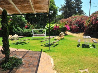 * חדרי סטודיו לאירוח זוגות עם עד 2 ילדים- אורחי חדרי רקפת נהנים ממתחם פרטי ירוק ושליו עם פינות ברביקיו, פינות ישיבה להתרגעות, נדנדות וערסלים.