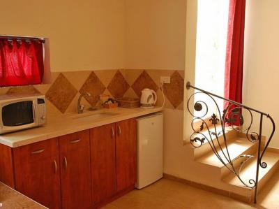 * מטבח מרכזי עם כיריים ותנור אפייה לרשות האורחים.